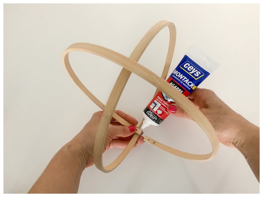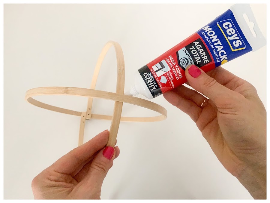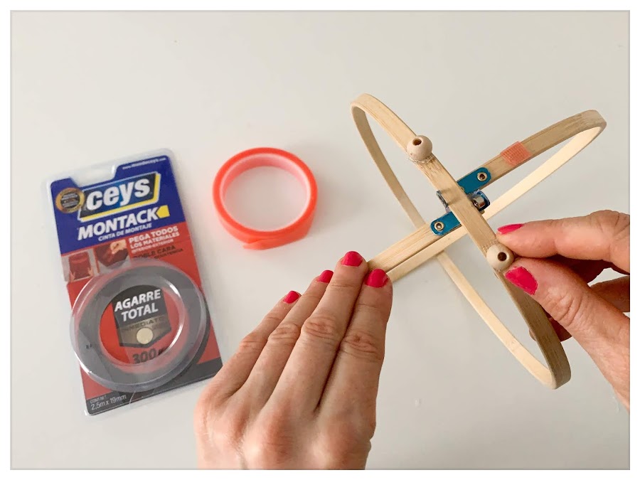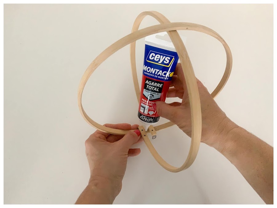 Pegar los dos aros con montack también en la parte superior, justo donde se juntan los dos.
