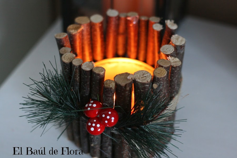En esta ocasión es un bonito y sencillo candelabro navideño, aunque también podría ser parte de una decoración estilo eco- natural que tanto se lleva ahora.