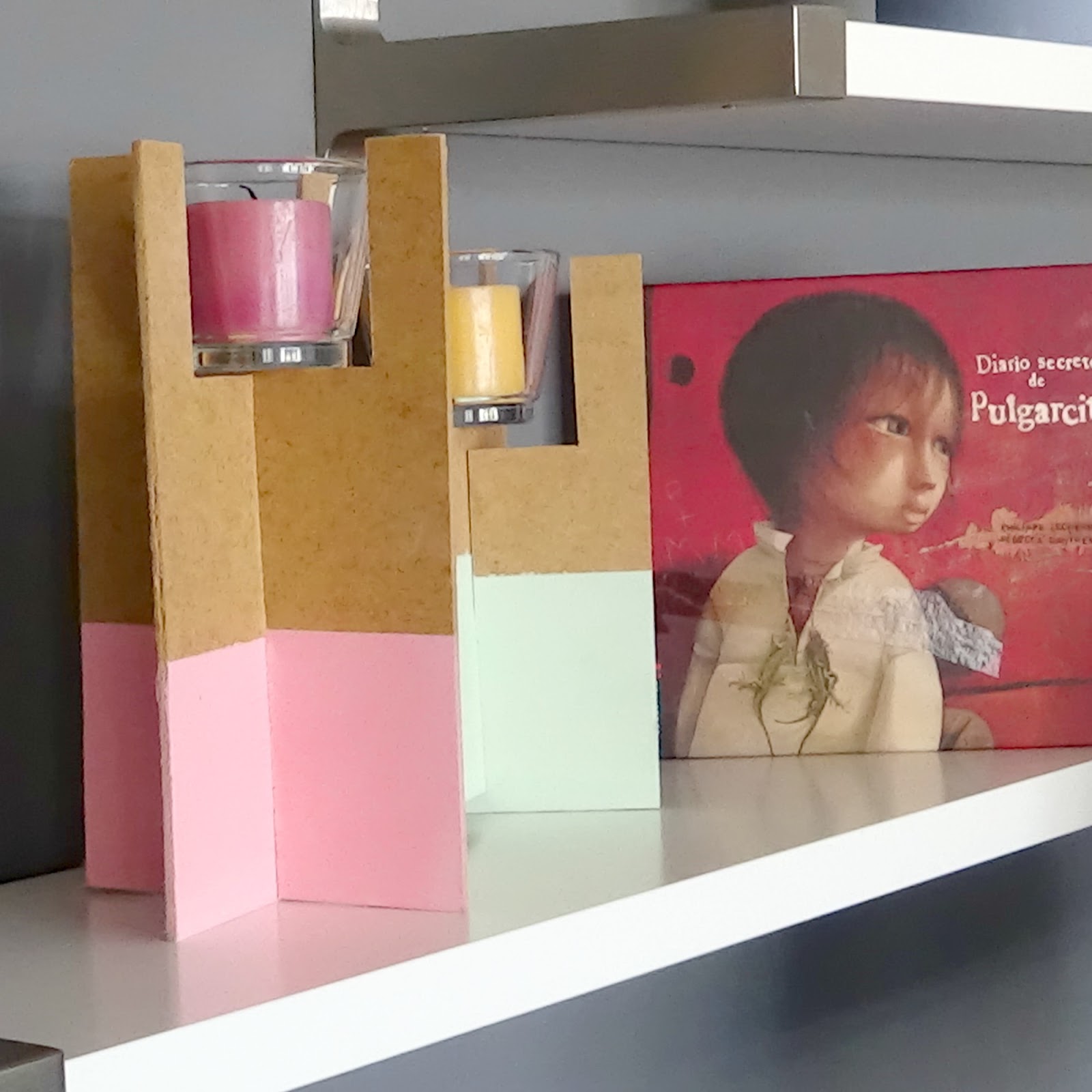 Para facilitaros el trabajo, os dejo el molde de los candelabros AQUÍ, para que lo descarguéis y os animéis a hacerlos. Yo los he hecho con una lámina de tablé de marquetería, quizás es más complicado de manejar, porque se necesitan herraminetas adecuadas para cortarlo. Pero no pasa nada, también lo podéis hacer en cartón o cartón pluma que es más fácil de trabajar y el resultado es igual de bonito.