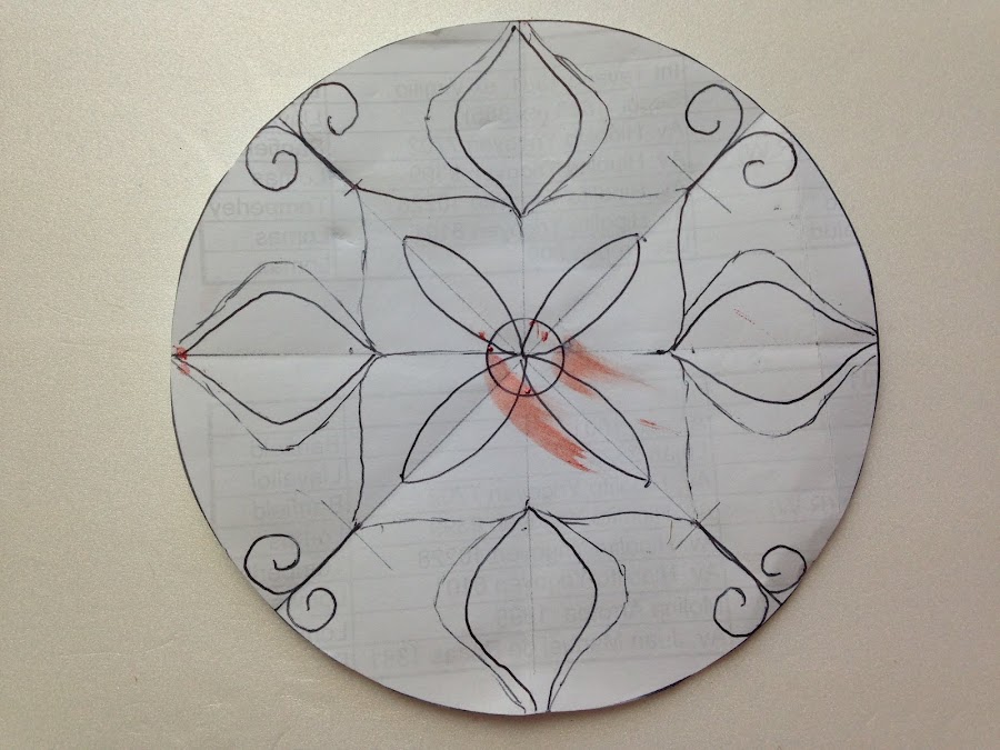 Para cada mandala usar el mismo dibujo y delinear con pintura dimensional las líneas más importantes.