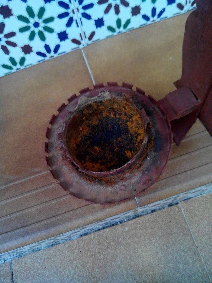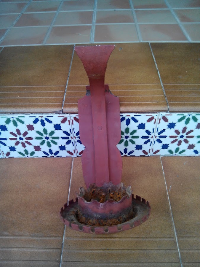 Cuando entramos a vivir en casa, nos encontramos esta especie de farol en la galería. Allí estaba, colgado con una tulipa de cristal color amarillento debido al desgaste del sol, y muy pero que muy deteriorado. Pero funcionaba!!! La bombilla estaba albergada en la tulipa y con una ténue luz, salíamos al "cuarto de lavar" que estaba sin techar, y al que caía agua a mares cuando en los meses de abril y mayo le da por llover de lo lindo en esta querida terreta.