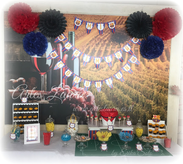 En este caso es un candy bar o mesa dulce para primera comunión, me dijeron que lo querían del futbol club barcelona y el libro de firmas a juego...