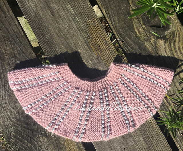 Punto uña con perlé nº5, punto bobo con la técnica de vueltas cortas http://lacanastilladecharo.blogspot.com/2018/11/instruciones-vueltas-cortas.html con lana bebe mama.