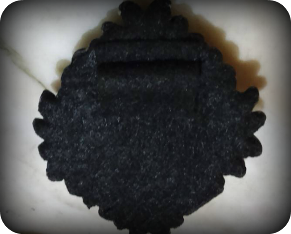 Preparo un trozo de fieltro para rematar la parte trasera del trabajo y otra pieza más pequeña que usaré para poder pasar un cordón o una cadena , los pego por la trasera de la pieza de esta forma,