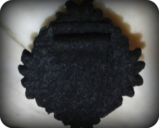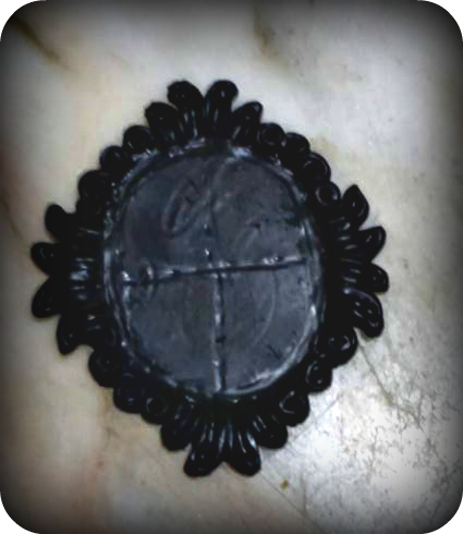 Una vez rematado el camafeo , con polvos de tizas pastel lo emborrono muy bien para tratar de envejecer la pieza , y se va al horno....