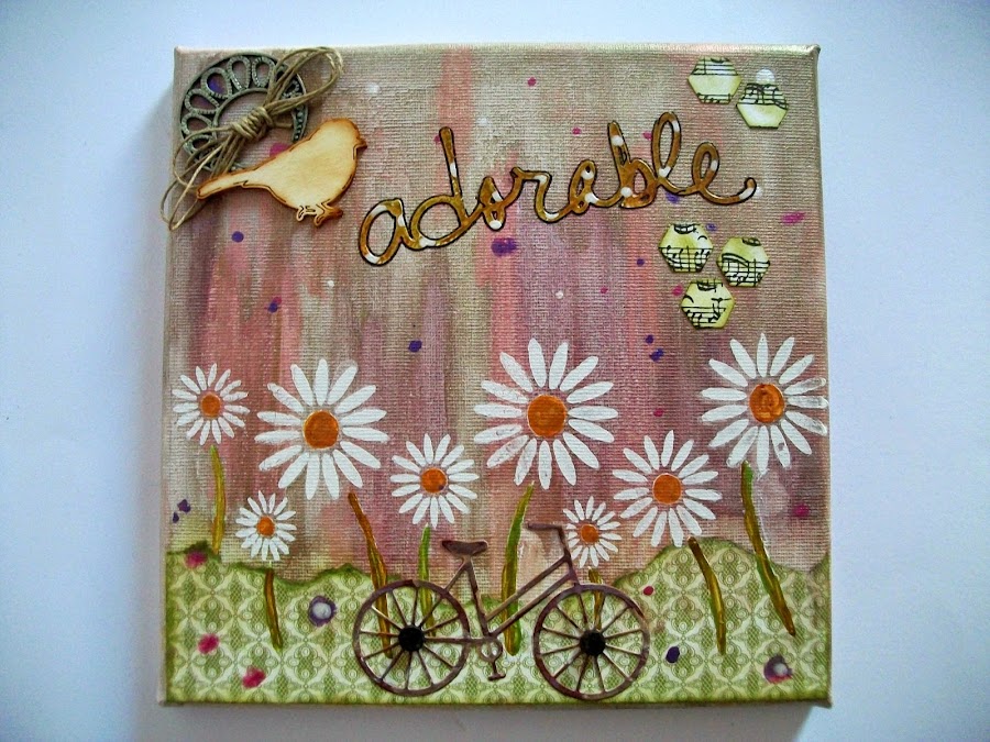 Y mirando tutoriales, usando la imaginación y la intuición... un poco de aquí, un poco de allá este es el resultado de mi segundo canvas que se ha ido a tierras zaragozanas para felicitar el cumple de Yolanda.