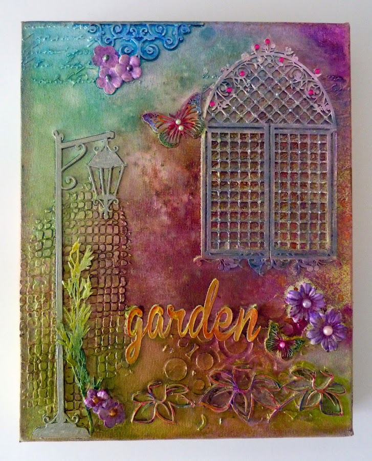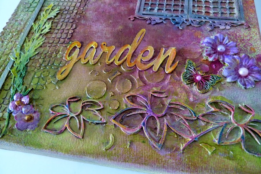 Después de disfrutar de unos días de vacaciones vuelvo a enseñaros uno de mis últimos trabajos. Un nuevo canvas mix media, estilo con el que disfruto mucho y cada vez voy aplicando nuevas técnicas y productos. En éste he usado un poco de todo, troqueles, flores, hojas, tintas en spray, gelatos, maderitas... Un chipobord de madera es uno de los protagonistas del canvas. Esta pintado con Distress Pa ...