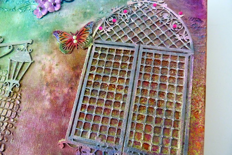 Y vuelvo a la carga con mis trabajos mix media!! Este canvas lo hice para el cumple de Gloria y de nuevo experimenté con mis tintas, pastas de texturas y diferentes técnicas que he ido aprendiendo. El fondo está hecho con una partitura muy antigua que compré en un anticuario francés y que guardaba para usar en alguna ocasión especial como ésta ya que Gloria es una apasionada de la música. Superpue ...