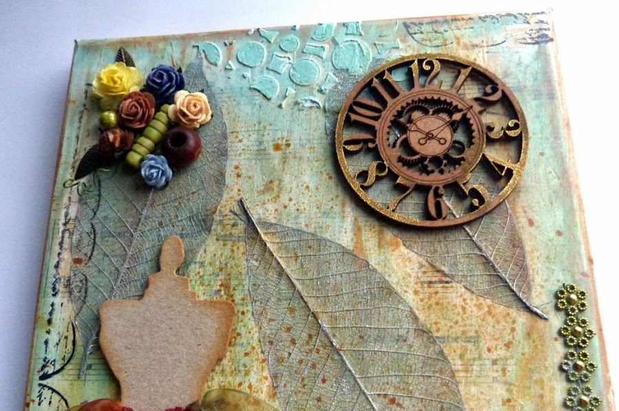 Este canvas lo hice para el cumple de Gloria y de nuevo experimenté con mis tintas, pastas de texturas y diferentes técnicas que he ido aprendiendo.