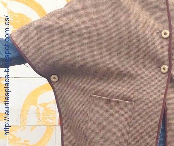 ¿Os habéis fijado en los botones? ¡Son totalmente Vintage! Los tenía guardados desde hace muchos años. Eran de una gabardina muy gastada que tenía mi madre de su juventud. Al tirarla le quitamos los botones porque eran preciosos. Hablando con mi madre sobre estos botones y su origen llegamos a la conclusión que podrían tener al menos ¡40 años!