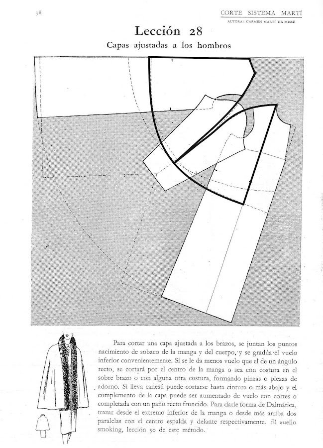 De esta página tomé la idea de hacer la capita, En el dibujo podéis ver que parto del cuerpo base (espalda y delantero) y la manga base.