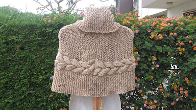 Esta tejida a dos agujas e punto musgo con trenza de dos columnas y tiene cuello alto, tejida con lana de alpaca Alize. Es sencillita y para las tardes de frio es una gran aliada, como regalo es algo muy lindo, les comento que le di a mi nuera por su cumpleaños y le encanto. Les invito a tejerla conmigo...así que manos al tejido!