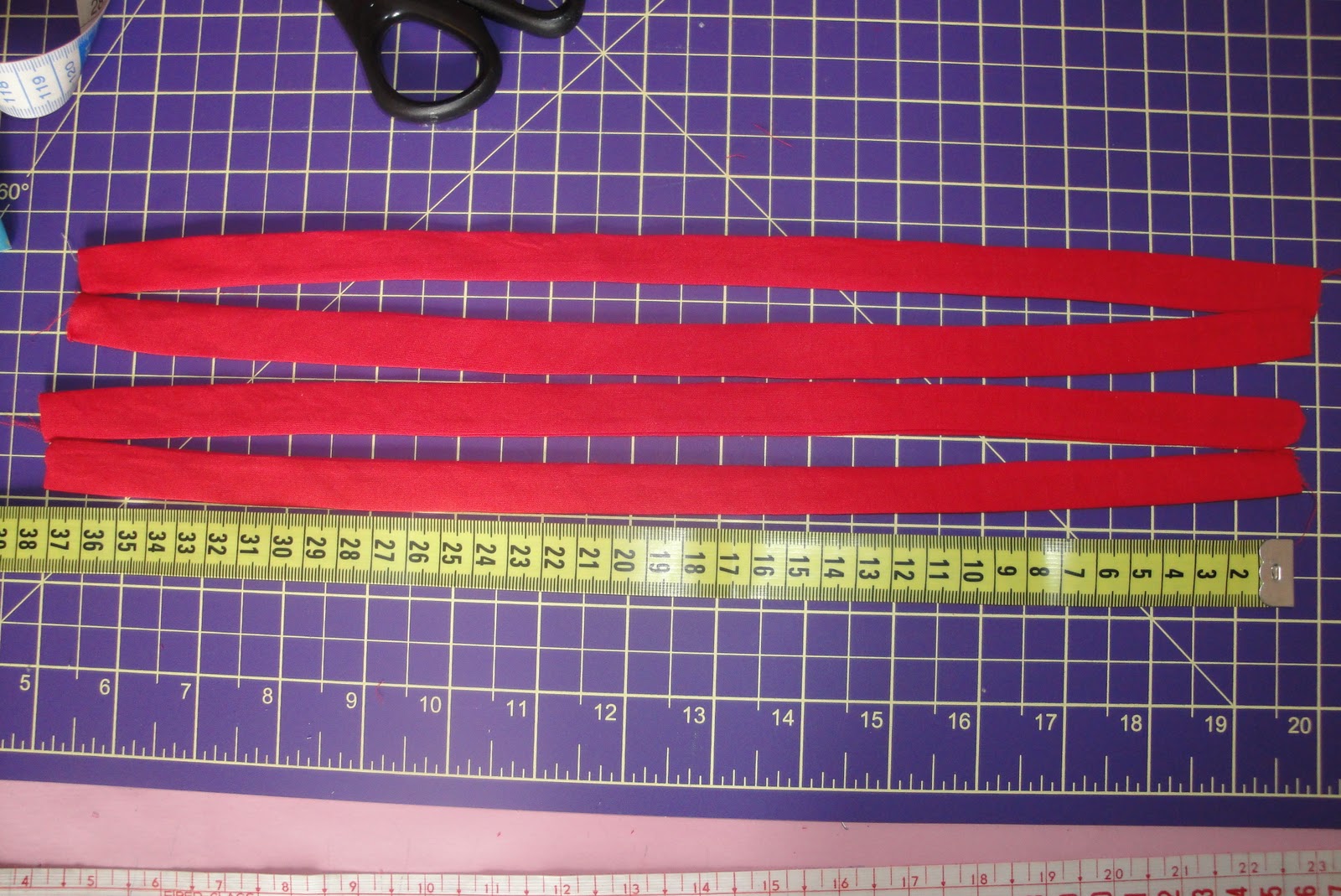 Faça umas tiras duplas de uns 30cm de comprimento ou use fitinhas de gorgurão