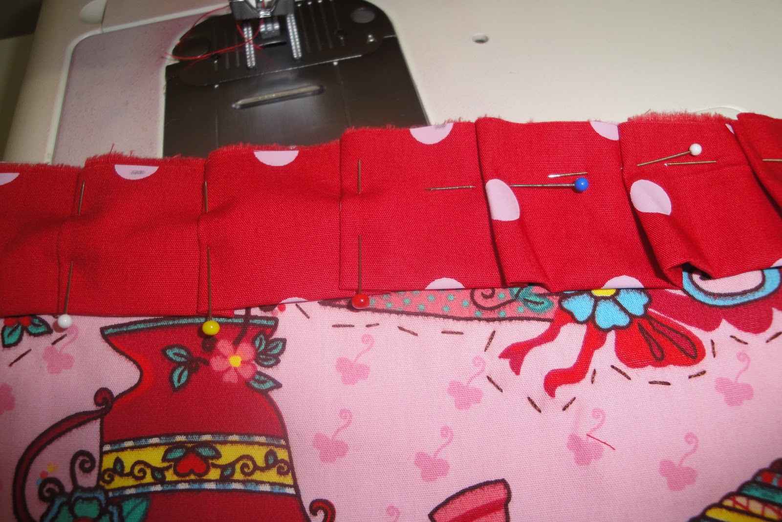 Feche as bordas e prenda ao direito do tecido, fazendo preguinhas , costure e dê acabamento.