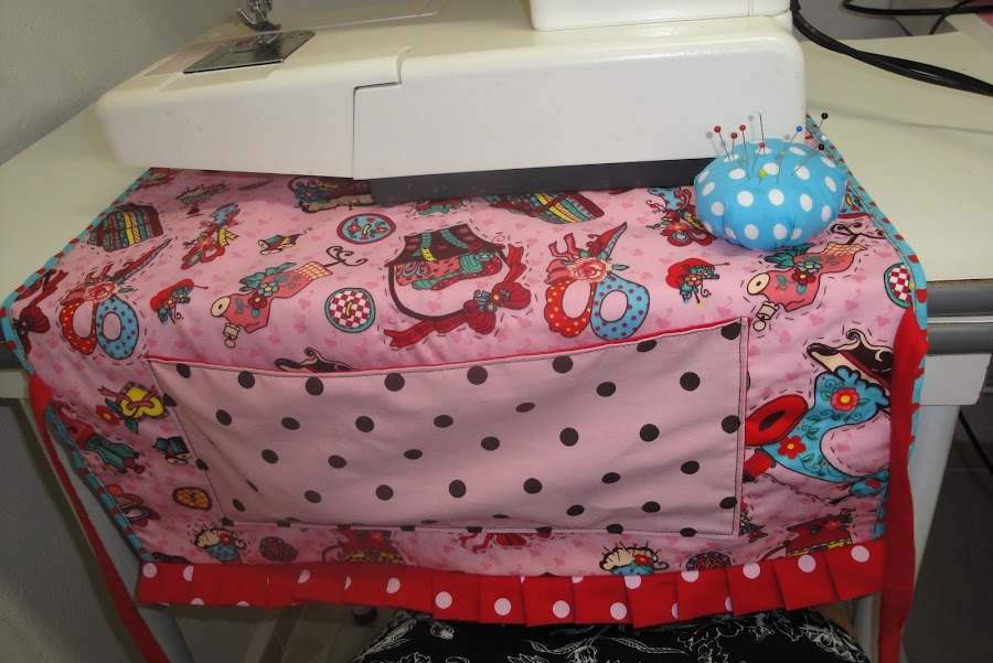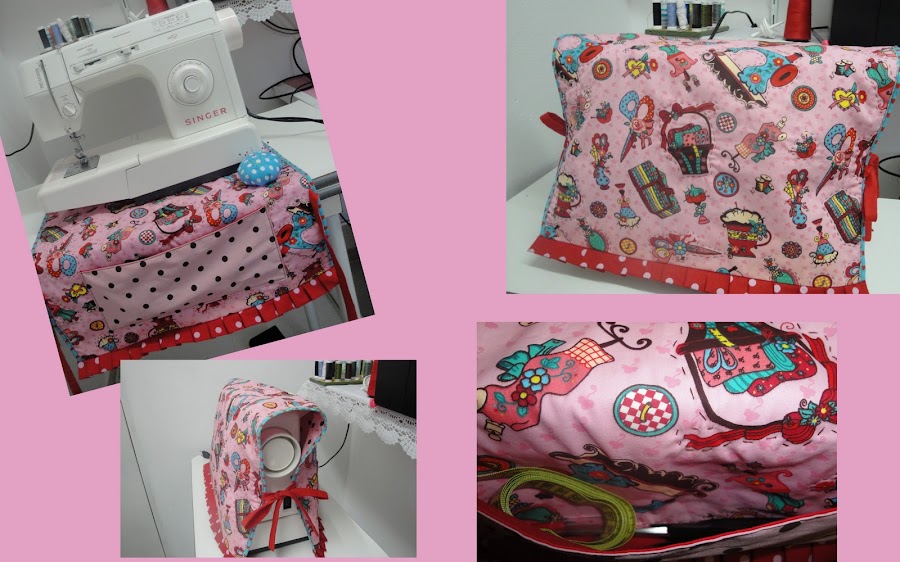 Adorei o resultado. Essa capa protege e embeleza a máquina e, quando estamos costurando, serve de tapetinho para a máquina, decorando o atelier e deixando todos os apetrechos à mão.