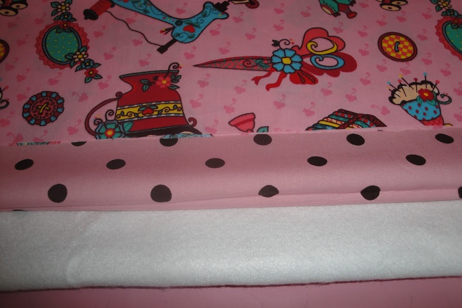 Corte la tela de arriba, el fieltro para rellenar o vellon y la tela de adentro con las medidas de máquina