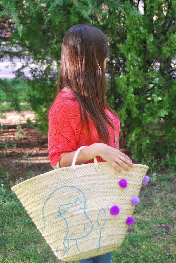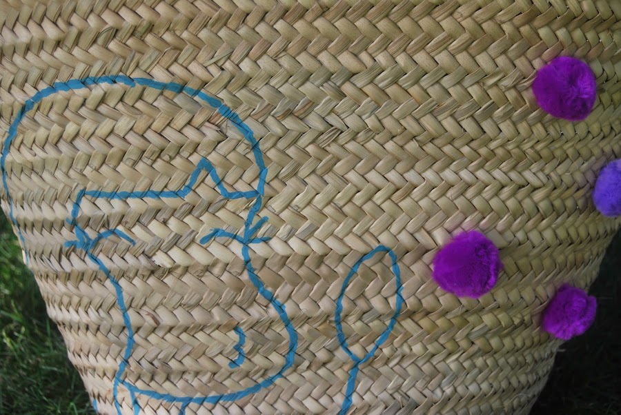 Y por fin... tenía muchísimas ganas de enseñaros la última creación. En esta ocasión, me he animado a salir del fieltro y probar nuevos materiales. Para el verano apuesto por este capazo pintado con ChalkPaint y adornado con unas bolitas de pelo.