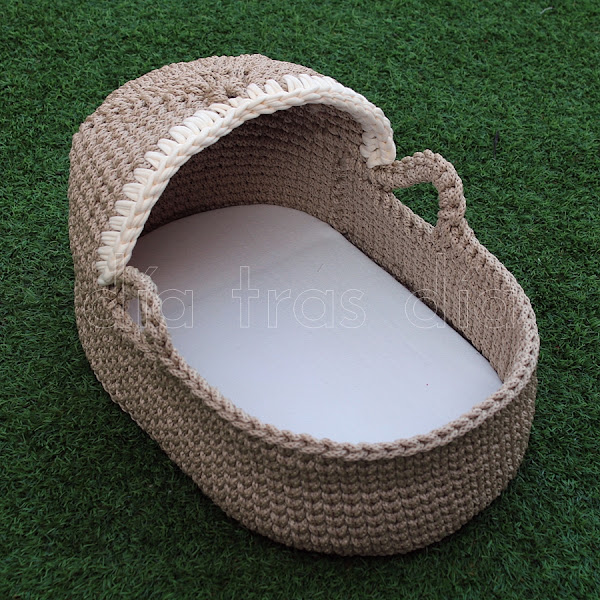 Hace ya mucho tiempo que mi alma de “culo veo, culo quiero” se había enamorado de unos capazos realizados con crochet que había visto por la red. Además, también llevaba bastante tiempo queriendo probar un nuevo material que me parecía muy interesante y que lo había visto a varias marcas de hilos. Y este material, cordón de algodón, era perfecto para realizar con él el capazo, así que lo tuve clarísimo: Nadia iba a recibir como regalo de Reyes un capazo realizado con cordón para poder acostar en él a sus bebés.