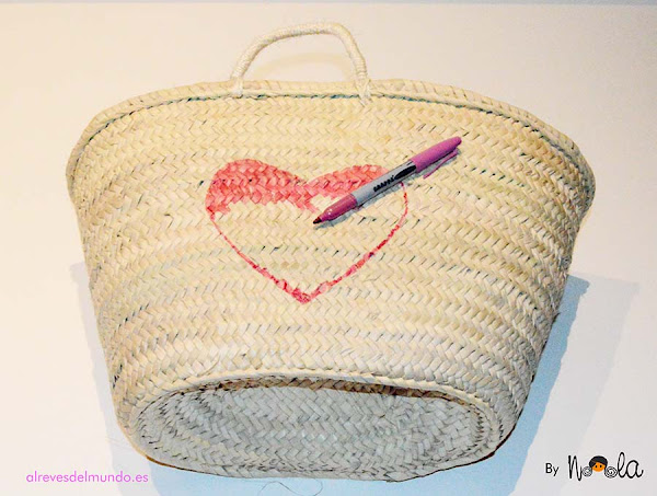 Recorta el corazón o forma que quieres pintar en el centro del capazo