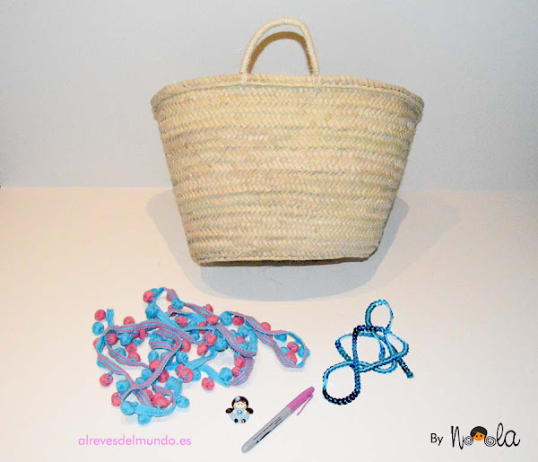 Pega la tira de madroños alrededor del capazo