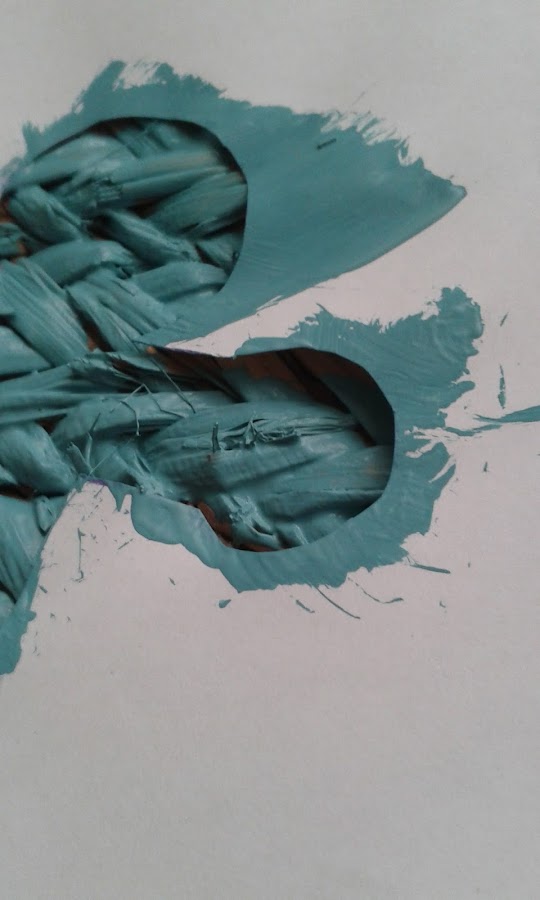 En el caso del ancla del capazo, usé este tono de Auténtico Chalk Paint, al que posteriormente le di una gruesa capa de barniz para evitar el deterioro prematuro de la pintura. Y como no tenía plantilla a mano de las que suelo utilizar cuando hago estarcidos, ideé la mía propia como se suele decir, en cero coma!! Fue sencillo, en un simple folio de papel y con ayuda de un rotulador y unas tijeras. ¡¡Total handmade!!