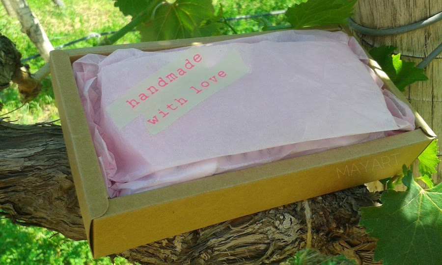 Y antes de despedirme, quiero enseñaros el nuevo Packaging MayArt que en estos últimos días he ido cocinando a fuego lento. A partir de ahora recibiréis vuestros pedidos de textiles en estas cajitas craft, con la etiqueta de cuidados correspondiente y sellado con una lazada hecha a mano.