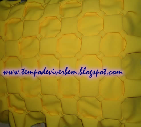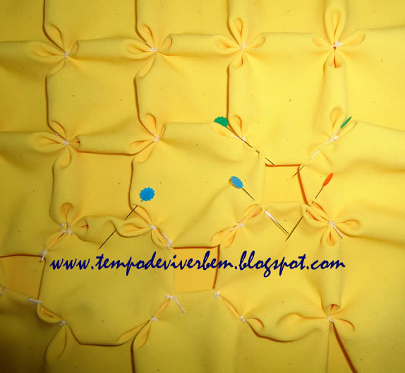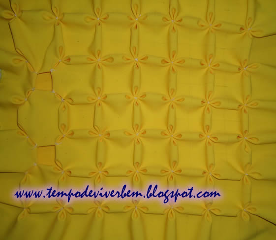 Marque o tecido (AVESSO) e faça o ponto casinha de abelha em todos os quadrados marcados.