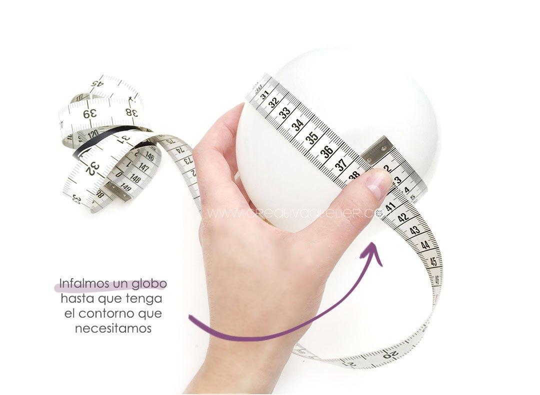 Una vez que hayas decidido la talla de tu capota de lana, deberás inflar un globo con esa misma medida. En mi caso, quiero hacerla para que me sirva para la talla 0-3 meses, por lo que he decidido que el contorno será de 37 cm. Cómo puedes ver en la tabla, la medida para recién nacido es de 35 cm. y la de 3 meses de 40 cm. por lo que he elegido una medida que esté entre ambos números.