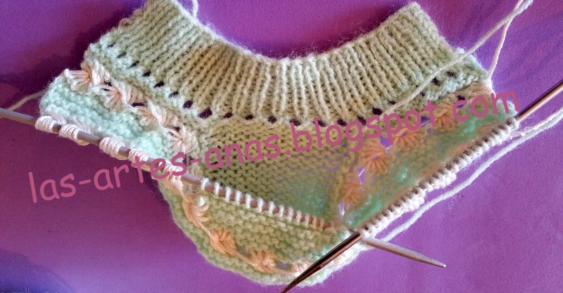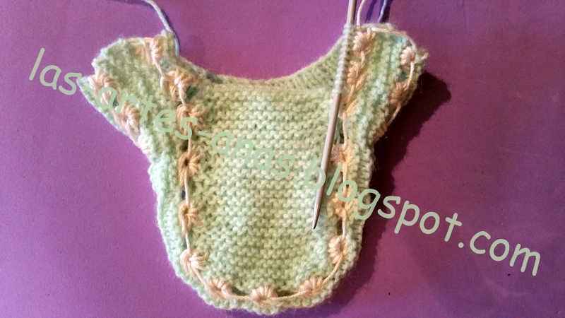 En mi próxima ENTRADA, OS COMPARTIRÉ EL TUTORIAL DEL JUBÓN que forma parte de este conjuntito para talla de 0-3 meses, SI LO QUERÉIS DE TALLA 6 MESES, LANITA Y AGUJAS 1 Nº MAYOR