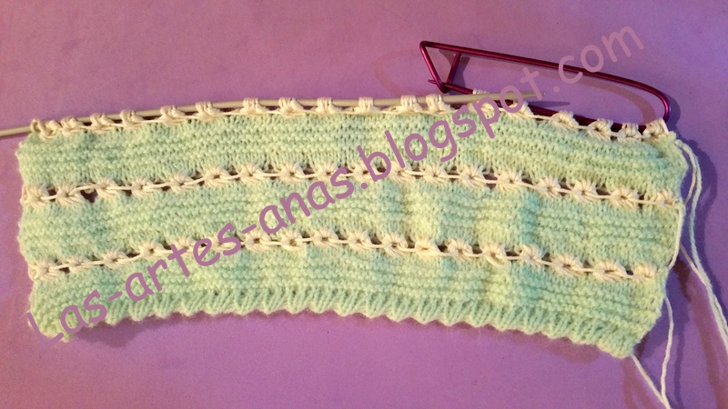 Cambiamos a agujas del 2 y medio,Alternando con 6 pasadas de punto bobo , 2 jersey y 2 DE PUNTO DE CARACOL, Y 2 DE JERSEY PINCHA aqui para ver el video del punto caracol, teje RECTO, hasta tener 3 motivos de caracol y 9 centímetros de alto