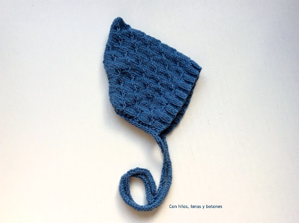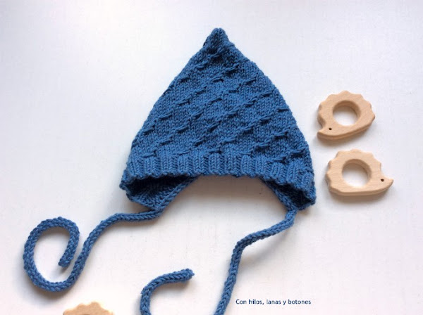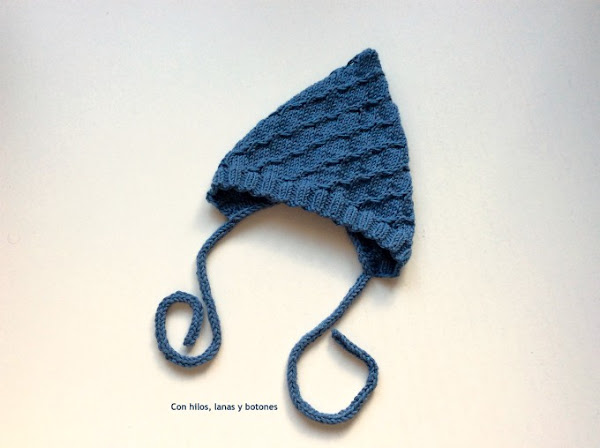 ¿Qué os ha parecido? Fácil, ¿verdad? ¿Os animáis a tejer una capota pixie como esta? Si es así espero que esta explicación os sirva de ayuda. Cualquier duda, sugerencia o comentario que tengáis será bien recibido. Si queréis hacer la capota y algún paso no os queda claro o bien encontráis alguna errata podéis contactar conmigo por correo electrónico (conhiloslanasybotones@gmail.com) o bien dejando un comentario en esta entrada.
