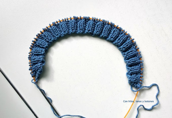 Repetimos estas dos filas hasta tener 40 puntos en la aguja y terminando con una fila por el revés de la labor.