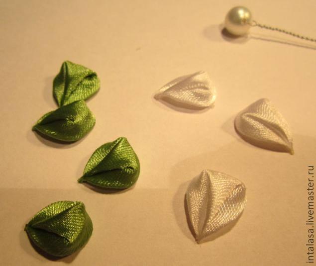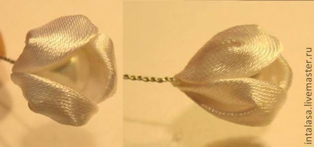 Echamos un poco de silicona caliente en el medio del pétalo volteado y lo pegamos a la perlita.