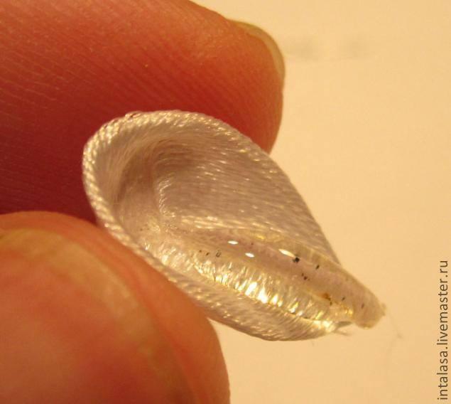 Volteamos los pétalos redondos del dentro hacia afuera. Presten atención que las uniones de la parte posterior están selladas con el fuego por separado.