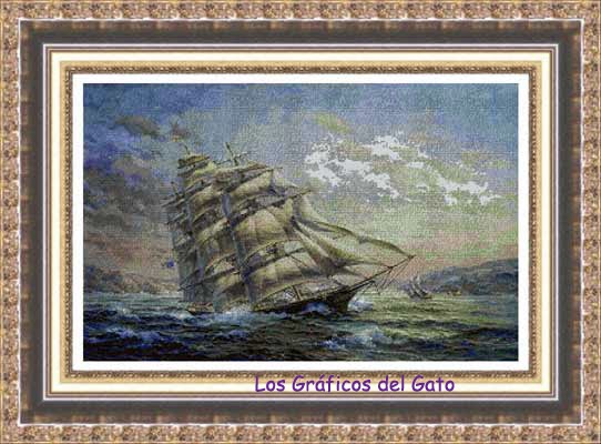 Precioso gráfico de una carabela en mar con tormenta...