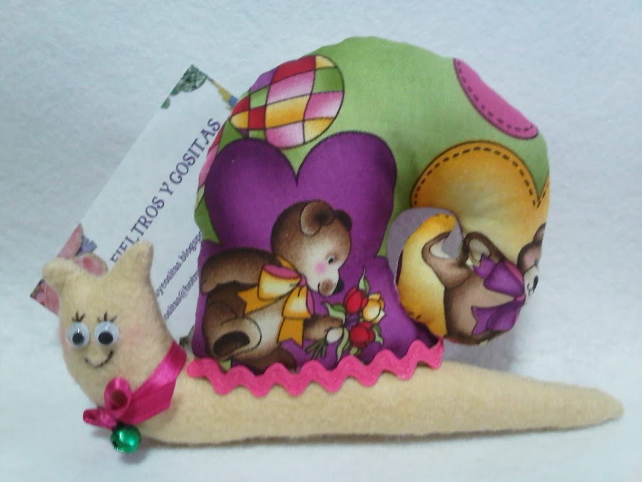 Estos días, he podido disfrutar de la compañia de mi madre y a sido genial(que pena que se paso tan pronto...) la estoy metiendo en el vicio del fieltro y los muñecos, jejej os iré enseñando todas las cosillas que hicimos .para empezar estos caracolillos tan dulces que viajaron con ella a Vitoria...a mi el resultado me encantó pues las telitas me chiflan
