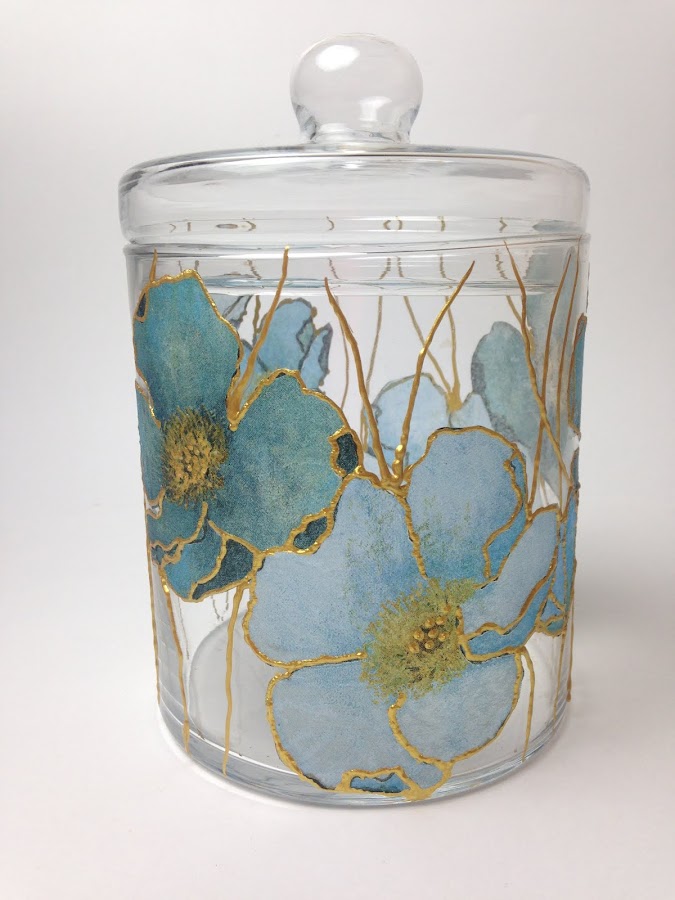El próximo paso es delinear las flores y hacerle los tallos con pintura acrílica dorada como se enseñó en el tutorial: http://disfrutacreandotutoriales.blogspot.com.ar/2017/03/como-usar-pintura-acrilica-como-pasta.html