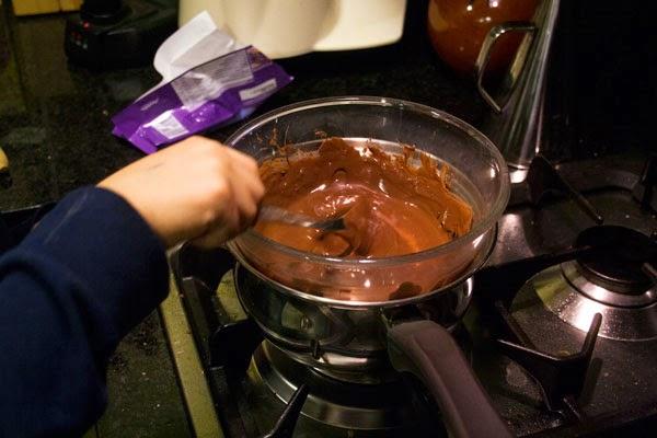 Cuando lo tengáis troceado, ponedlo en un bol al baño maría y removed constantemente hasta que el chocolate se funda.
