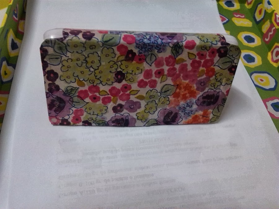 Como no conseguía que quedara limpia, empecé a pensar de que manera podíamos darle una nueva vida sin que tuviese ese aspecto tan feo... Al principio no me decidía que hacer si, pintarla, si usar washi tape, al final decidi que como tenia un montón de papeles de decoupage y estoy muy contenta con el resultado.