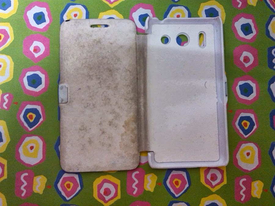 Solo necesitamos la funda de móvil vieja, papel y barniz para decoupage, tijeras y tijeras