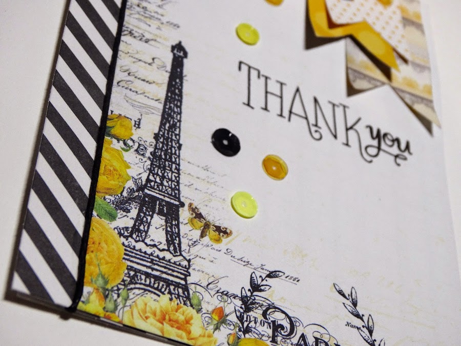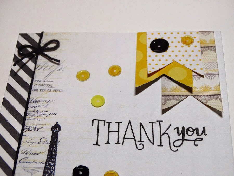 Como veis, todo está hecho con los materiales del kit, los papeles y los sellos. Yo he añadido unas pocas lentejuelas y un poco de cordóncito negro.