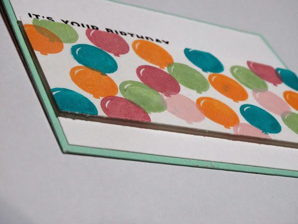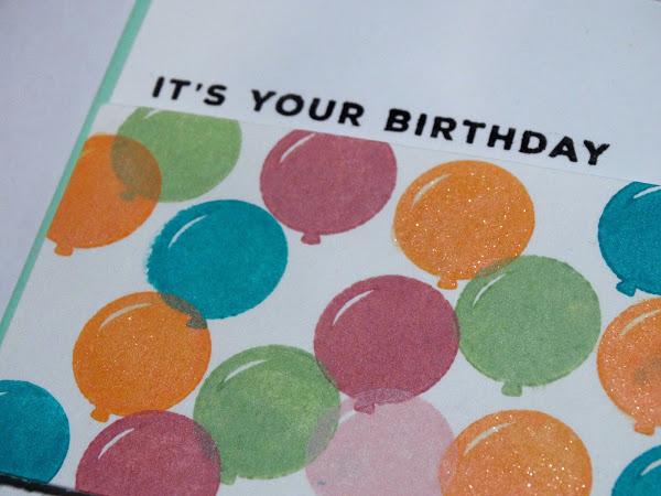 para esta primera tarjeta he usado las cartulinas y los sellos que vienen en el kit. Tenía ganas ya de darle uso al sello de globo, y no veas como lo usé! jajaja