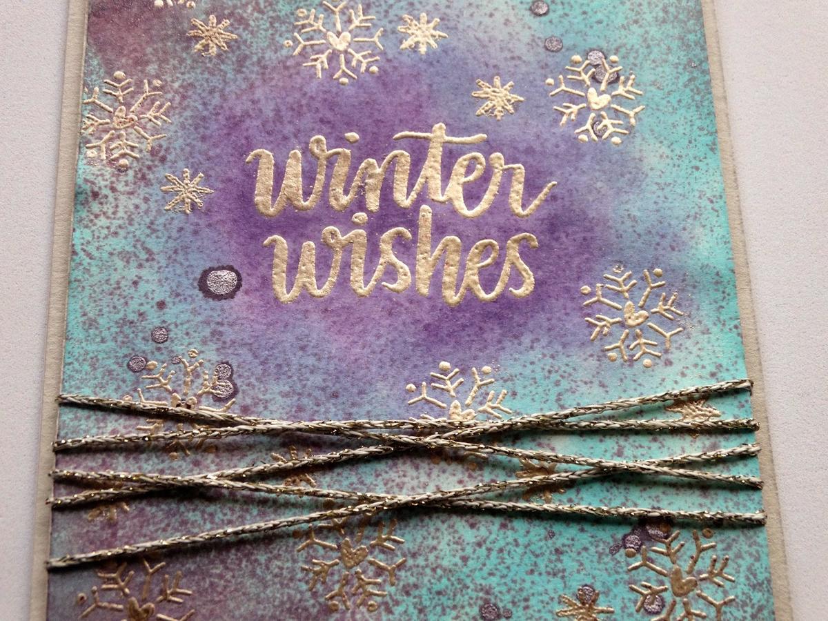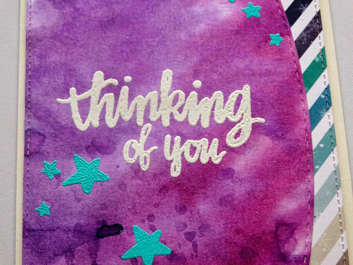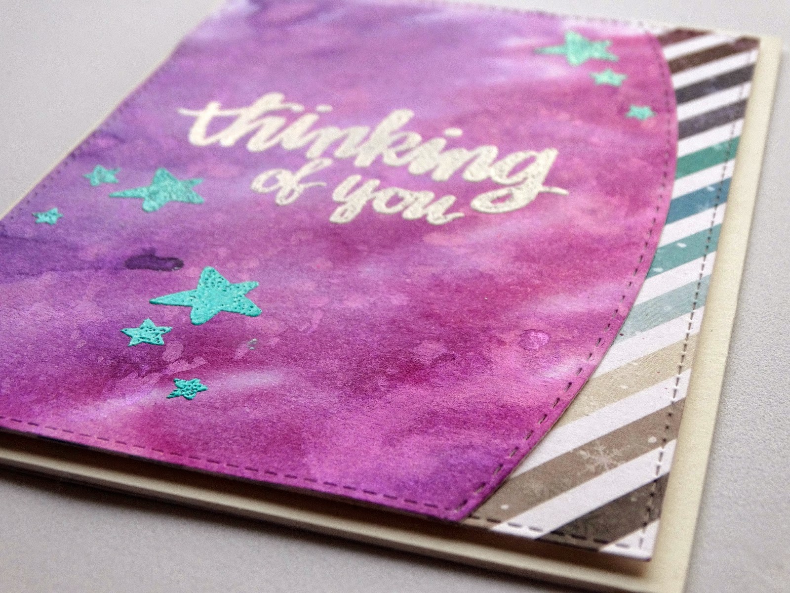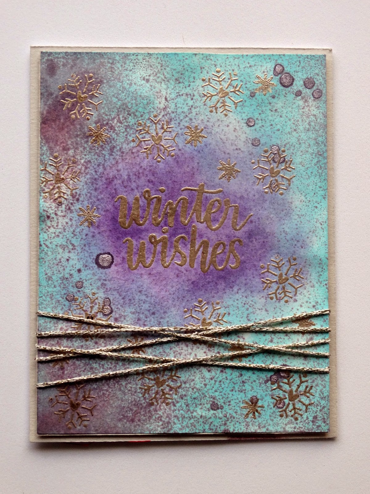 Para la siguiente tarjeta he usado tinta Hero Arts y distress y también un spray morado de Heidi Swapp.