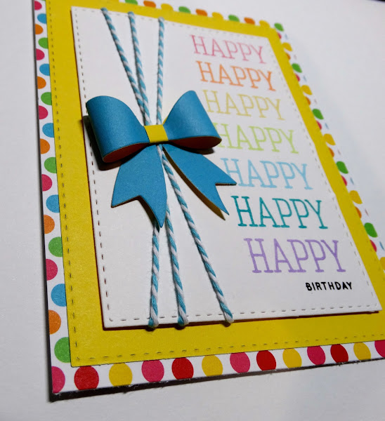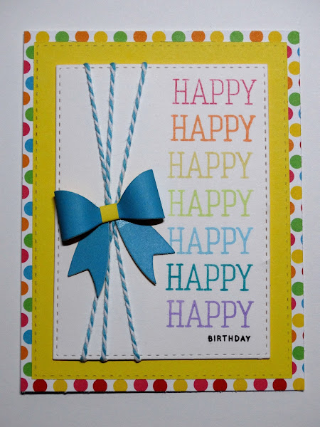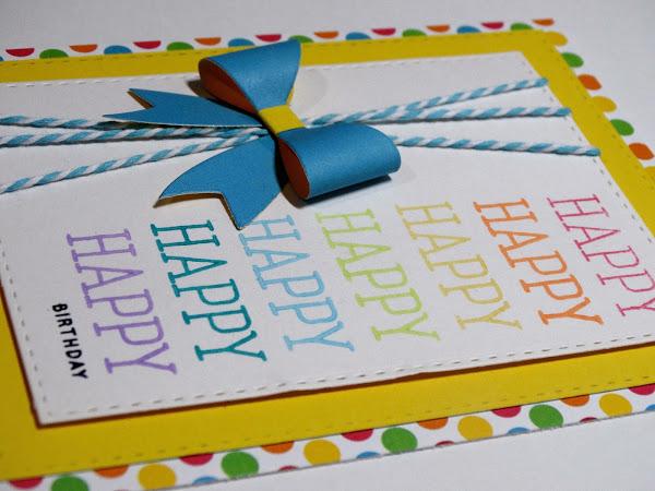 Para esta tarjeta he usado los restos del papel decorado que me quedaba, que no eran muchos y los sellitos. He sellado en distintos colores un sello con la palabra "Happy" y al final de todo he puesto el "birthday" en chiquitín.