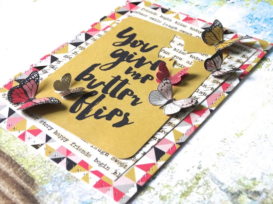 Un par de capas de papel, una de las tarjetas de Project Life que vienen en el kit y he recortado algunas mariposas de los papeles del kit y ya. Fácil verdad?