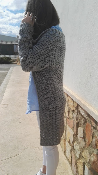 Esta hecho para mi cuñada que tras ver mi chaleco fácil, me dejo caer si sería capaz de hacerle algo tipo cardigan para ella y me puse a buscar algo no muy complicado de hacer.