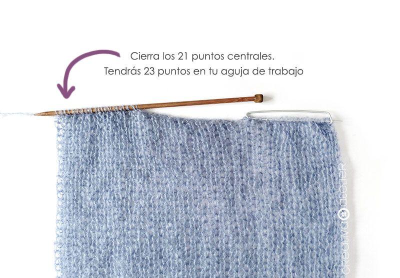 Debes comenzar a tejer estas disminuciones en la pasada impar o la que es entera a punto derecho.