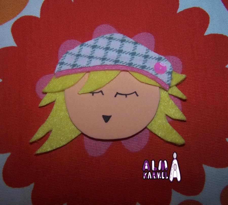 Y por supuesto nuestra jovial Karmela con su boina de colores suaves y dulces.