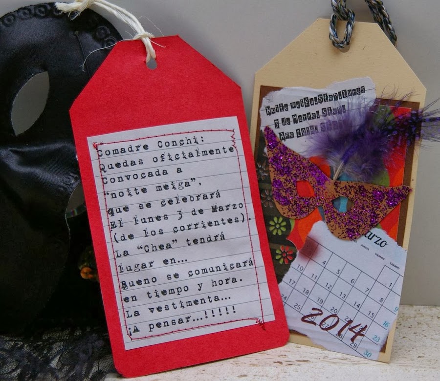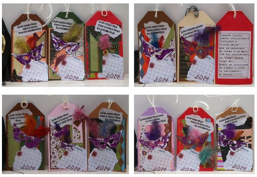 Tarjetas-invitación CarnavalComo veis una forma muy "casera" de hacer invitaciones y que pueden hacerse para cualquier evento.