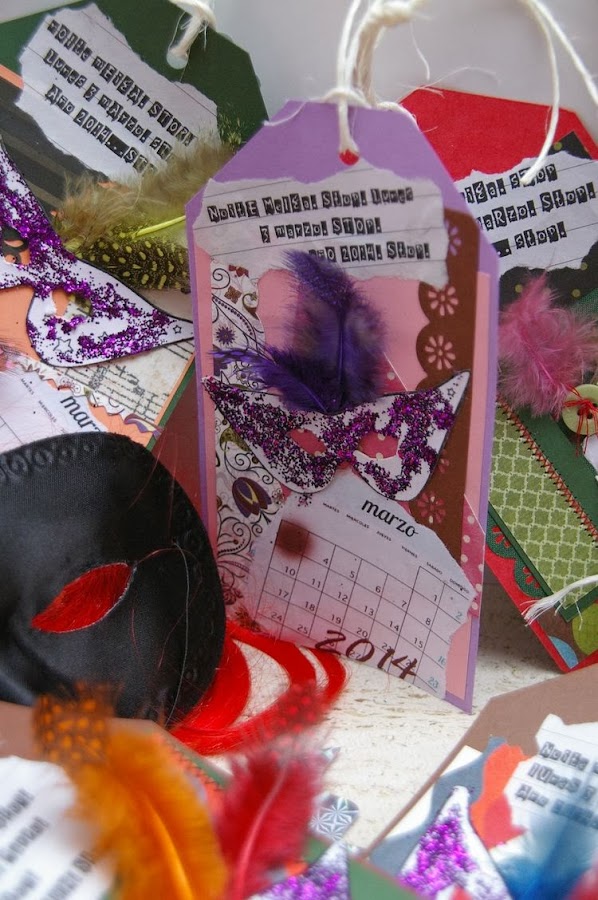 Fácil y sencillo.... Con unas invitaciones carnavaleras muy coloridas y divertidas (y muy de andar por casa). Al mismo tiempo aprovechamos esos recortes de papel, telas y cartulinas que nos sobraron de otros trabajos, les añadimos unas plumas de colores, purpurina y lentejuelas....